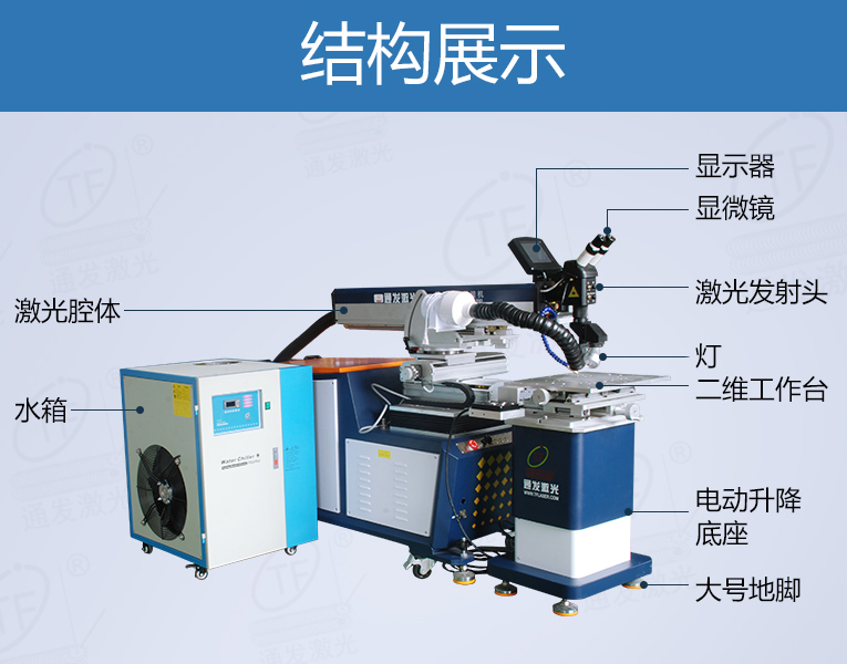 出口型模具激光焊機(jī)是通發(fā)激光公司專門為出口國外客戶使用而設(shè)計的系列機(jī)型TFL-200E,適用于各類精密注塑模具、壓鑄模具等模具激光修補(bǔ)焊接;同時也適合鑄件沙孔激光修補(bǔ)、模具崩缺激光修復(fù)、過切加工等的激光修補(bǔ);各類金屬結(jié)構(gòu)件、金銀首飾的激光焊接加工。